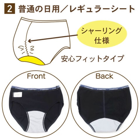 ・体にフィットする生地と、おしりをすっぽり包み込む形で安心。マチの幅もしっかり広めなので、モレにくい!
