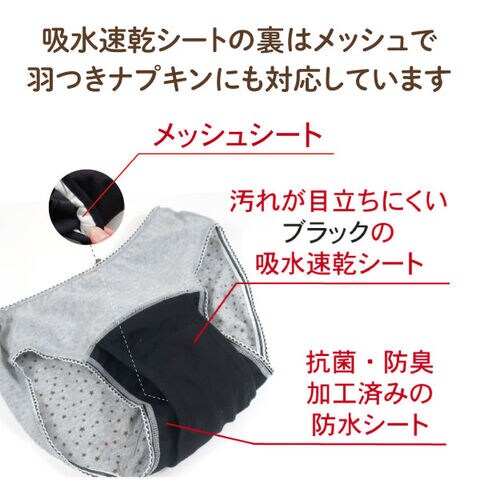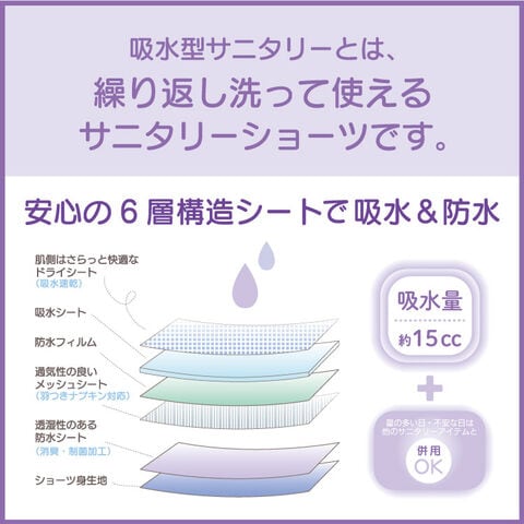 ・約15ccの吸水量でナプキンとの併用も可能なショーツ。