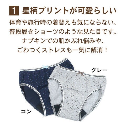・体育や旅行時の着替えも気にならない、普段履きショーツのような見た目のかわいい星柄です。