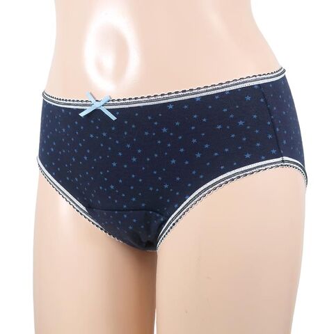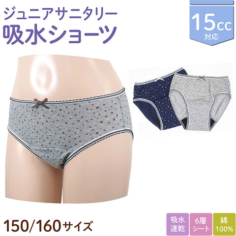 日本製 15cc ジュニア 吸水サニタリーショーツ 可愛い星柄とリボン 6層シート 生理用 吸水 ネイビー160