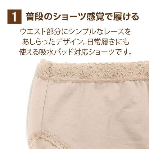 【快適な履き心地にこだわった吸水パッド対応ショーツ】