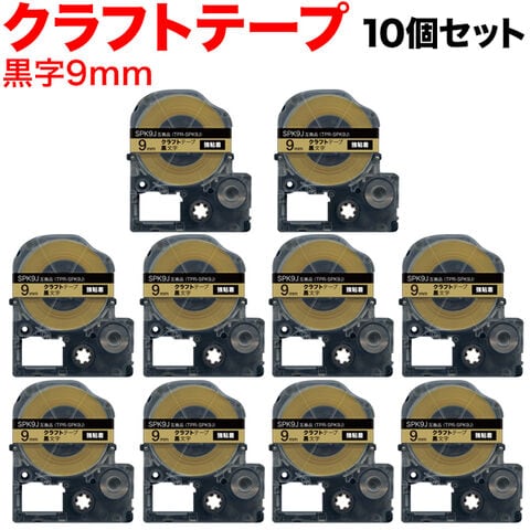 キングジム用 テプラ PRO 互換 テープカートリッジ SPK9J クラフトラベル 強粘着 10個セット 9mm/ベージュテープ/黒文字/クラフトラベル