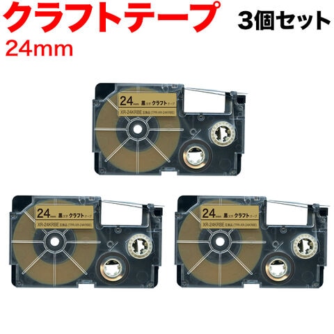 カシオ用 ネームランド 互換 テープカートリッジ クラフトラベル XR-24KRBE 3個セット 24mm/ベージュテープ/黒文字/クラフトラベル