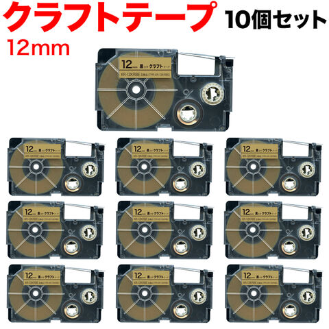 カシオ用 ネームランド 互換 テープカートリッジ クラフトラベル XR-12KRBE 10個セット 12mm/ベージュテープ/黒文字/クラフトラベル