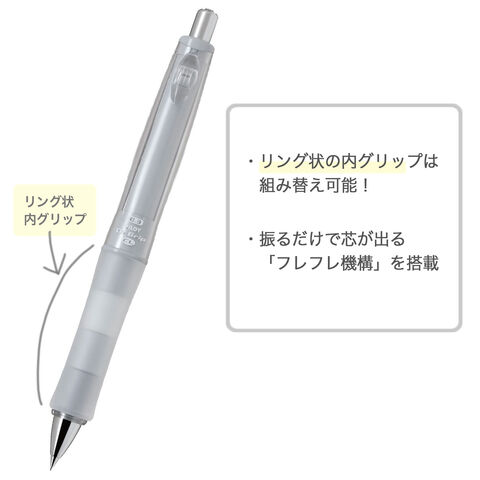 パイロット独自のフレフレ機構を搭載し、ノックせずに振るだけで芯を繰り出せるので勉強に集中できます。