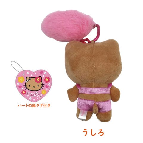 サンリオ ハローキティ しっぽ付き マスコット キーホルダー 日焼け ぬいぐるみ ボールチェーン 水着 ギャル ファー 全1種