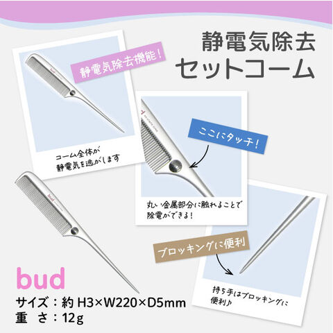 bud(バド) 静電気除去 セットコーム 1個 乾燥 静電気防止 除電 ヘアブラシ クシ ブロッキング ヘアセット