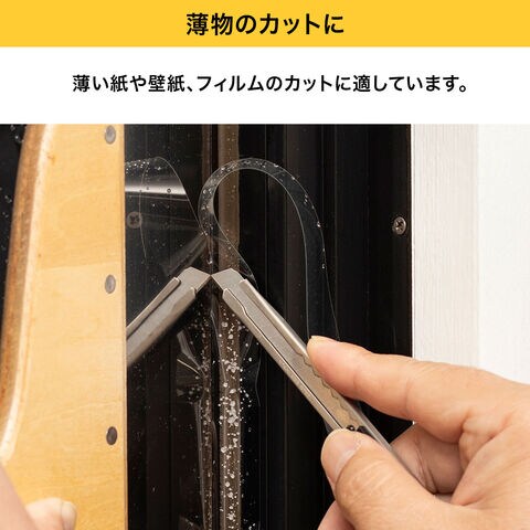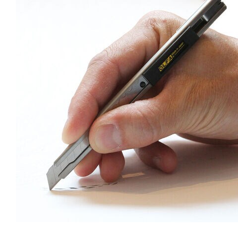 スリムなデザインで、水に濡れてもサビにくいステンレス製の小型カッターナイフ。