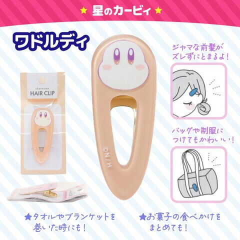 |ヘアクリップ|クリップ|前髪クリップ|ヘアアクセ|メイク|メイク直し|洗顔|小物|雑貨|制服|学生|女子高生|ティーン|キッズ|プチギフト|プレゼント|お揃い|かわいい|オシャレ|星のカービィ|カービィ|ワドルディ|キャラクター|