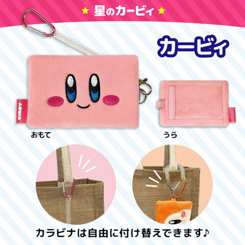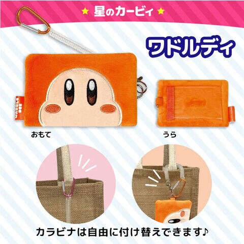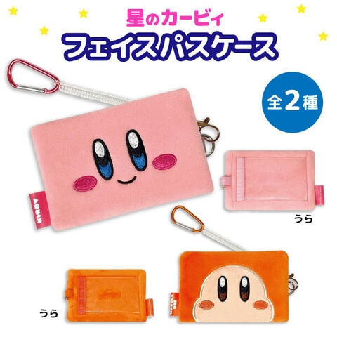星のカービィ フェイス パスケース ロゴ 刺繍 ワドルディ 定期入れ カラビナ コイルコード 通学 カワイイ