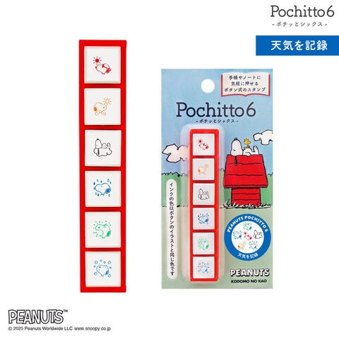 |ポチッとシックス|ポチっと6|Pochitto6|PEANUTS|ボタン型スタンプ|浸透印|スヌーピー|お天気|
