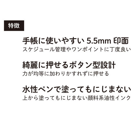 印面サイズ5.5mmの小さいサイズのスタンプは手帳のスケジュール管理にとっても便利。