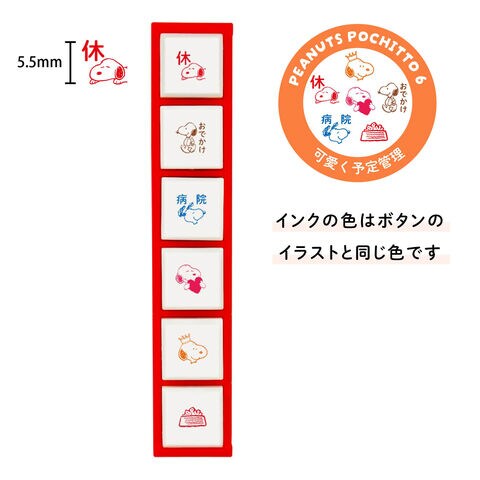 【メール便可】押しやすいボタン型スタンプ「ポチッと6」にスヌーピーの新柄登場!