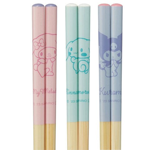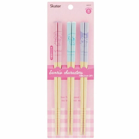 【メール便可】親子やきょうだいで楽しく使える、サンリオキャラクターズの竹箸3Pセット