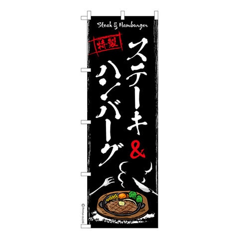 商品名「のぼり旗 ステーキ ハンバーグ 2 既製品のぼり 高品質デザイン【メール便可】」