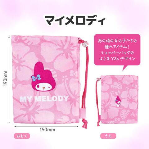 サンリオキャラクターズ ショッパー風巾着 ギャル ハイビスカス ヒョウ柄 かわいい 小物入れ 給食袋 プチギフト クロミ