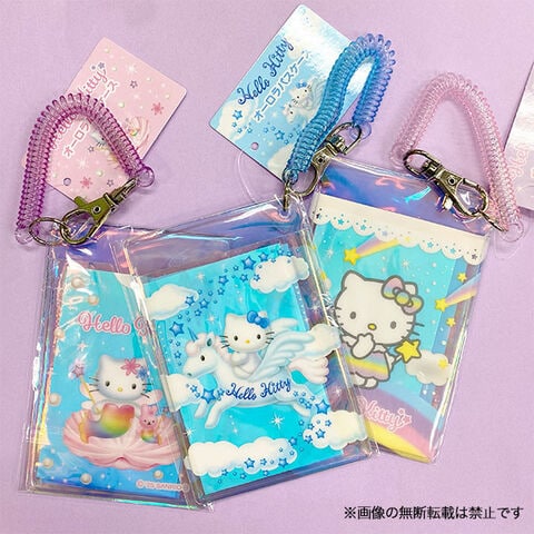 |おでかけ|通学|通勤|定期入れ|パスケース|カード入れ|コイルコード|コイルチェーン|伸びる|ケース|サンリオ|キティ|オーロラ|透明|クリア|マーメイド|フェアリー|ペガサス|ハローキティ|キャラクターグッズ|