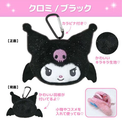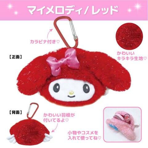 マイメロディ クロミ エンジェルシリーズ フェイスミニポーチ 1個 ラメ キラキラ カラビナ 小物入れ フワフワ 天使 羽 マイメロディ(レッド)