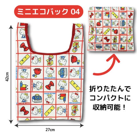 サンリオキャラクターズ ハローキティ 復刻版デザイン Vol.1 ポケット付き ミニエコバッグ 1個 昭和レトロ エコバッグ キティ(チラシ柄04)