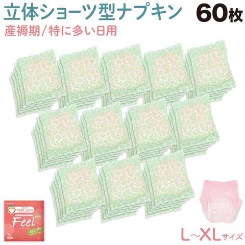 女性用 ECO 産褥ショーツ型ナプキン フィールオーガニック L-XLサイズ 60個 多い日用 夜用 防災 使い捨て ショーツ型 60枚