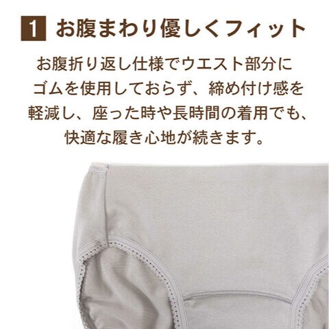 ・お腹折り返し仕様でウエスト部分にゴムを使用しておらず、締め付け感を軽減。