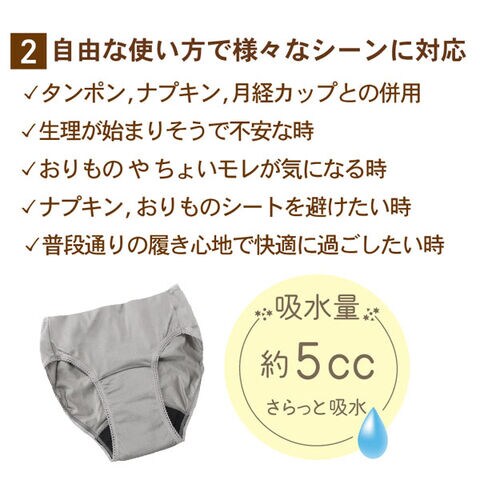 ・約5ccの吸水量でナプキンとの併用も可能なショーツ。
