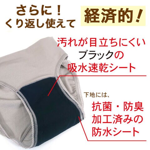 【安心の5層構造シートで繰返し洗って使える吸水サニタリーショーツ】