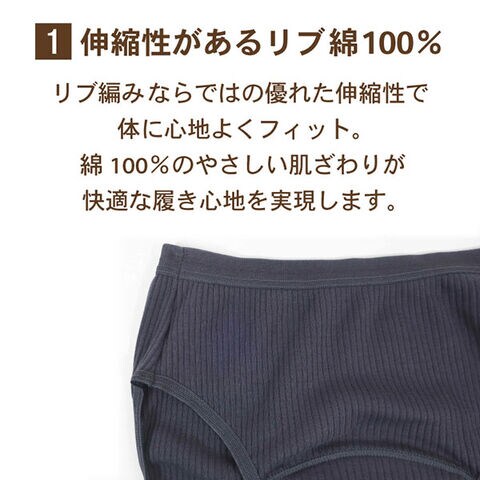 ・リブ編みならではの優れた伸縮性で体に心地よくフィット。