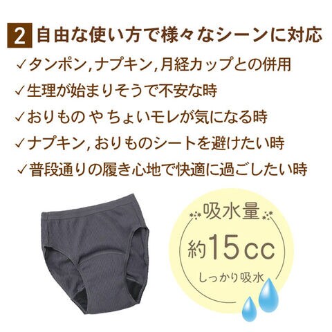 ・約15ccの吸水量でナプキンとの併用も可能なショーツ。