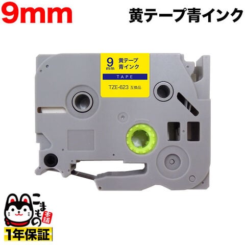 ブラザー用 ピータッチ 互換 テープ TZE-623 ラベルカートリッジ ピータッチキューブ対応 9mm/黄テープ/青文字