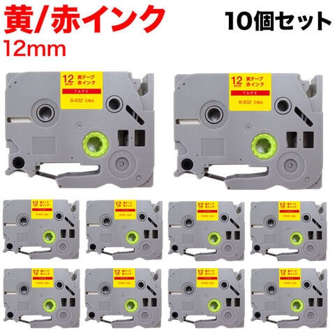 ブラザー用 ピータッチ 互換 テープ TZE-632 ラベルカートリッジ ピータッチキューブ対応 10個セット 12mm/黄テープ/赤文字