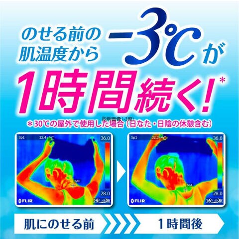 ・のせる前の肌温度から-3℃が約1時間持続し、熱を逃します。