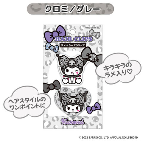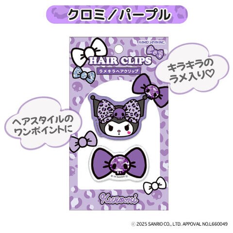 サンリオ ハローキティ×クロミ ギャルアート ラメキラ ヘアクリップ 2Pセット かわいい 前髪クリップ スクバ ビッグリボン ラメ クロミ(パープル)