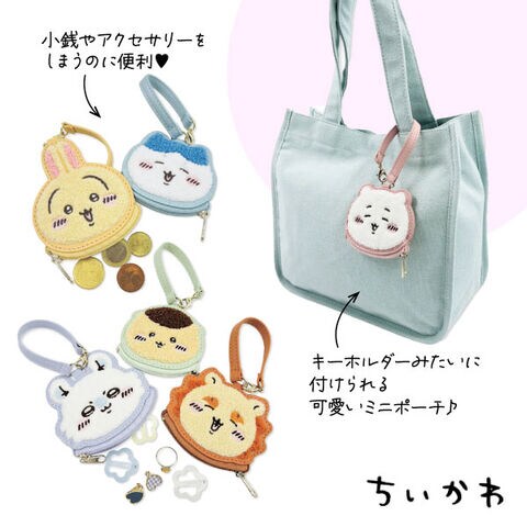ちいかわ おかお サガラ ミニポーチ 1個 チャーム 小物入れ 小銭入れ うさぎ ハチワレ モモンガ サガラ刺繍 かわいい くりまんじゅう