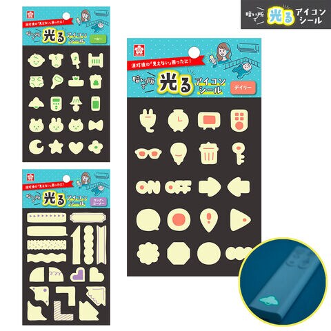 【メール便可】暗いところで探しがちな物や家具の角に貼って見つけやすく!「暗い所で光るアイコンシール」