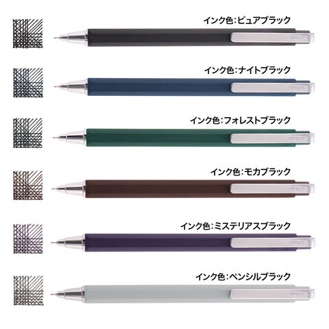 限定カラーとして発売したペンシルブラックが定番化となり、6色の黒インキをご用意しました。