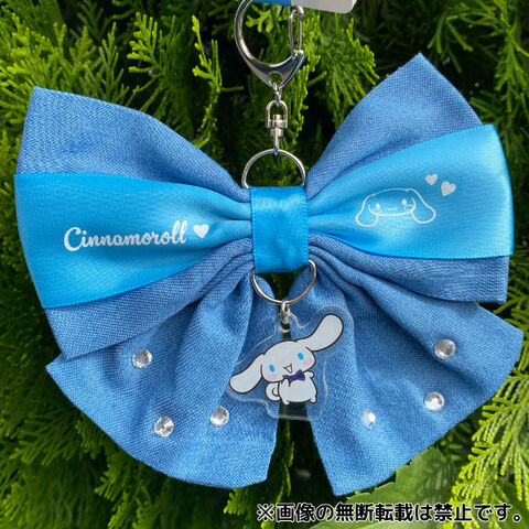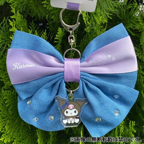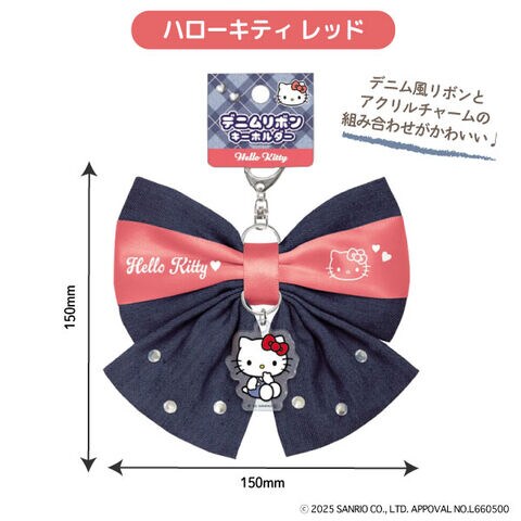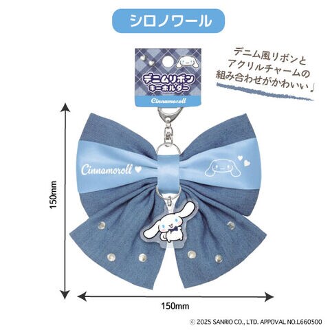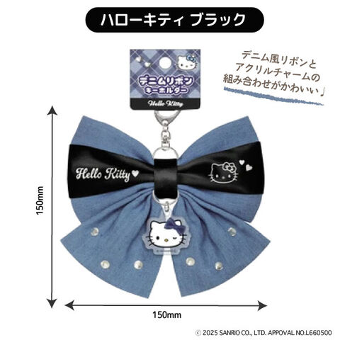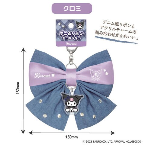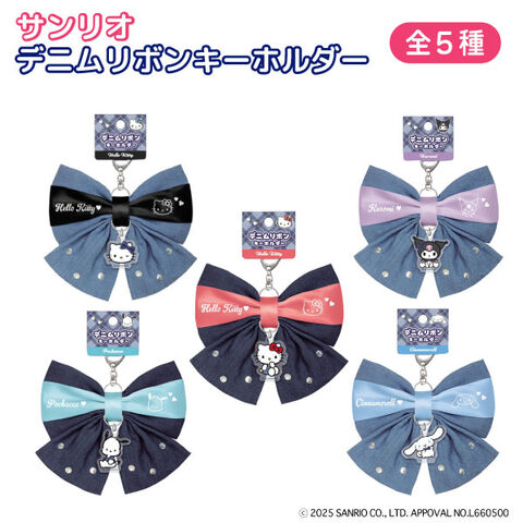 サンリオキャラクターズ デニム リボン キーホルダー チャーム付き 1個 平成レトロ デニム生地 かわいい スクバ 学生 キティ かわいい クロミ