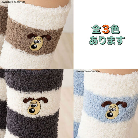 |助野|靴下|モコモコ|ふわふわ|マシュマロ|マシュマロソックス|ぽかぽか|ぬくぬく|冬用|厚手|レディース|婦人|暖かい|防寒|冷え性|フットケア|温活|部屋着|ボーダー|かわいい|ウォレスとグルミット|ウォレス|グルミット|キャラクター|キャラクターグッズ|キャラソックス|クレイアニメーション|