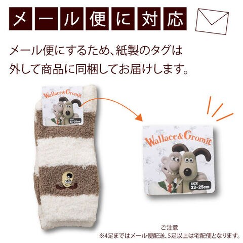 【メール便可】 もこもこ生地とボーダー柄がかわいいウォレスとグルミットのルームソックス♪