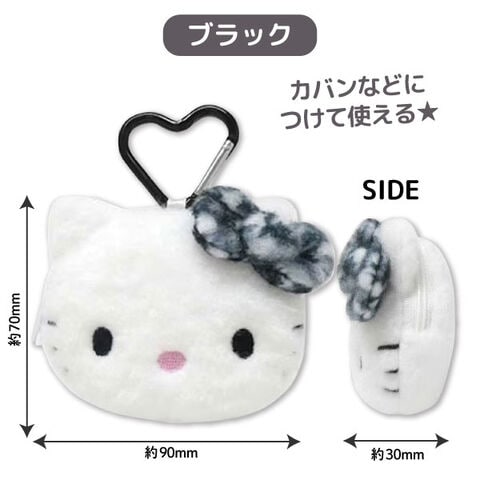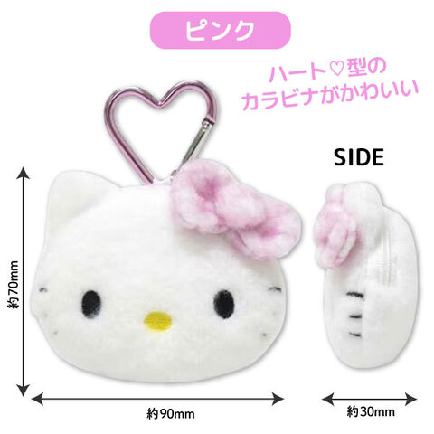 ハローキティ 千鳥格子シリーズ フェイス型 小銭入れ 1個 昭和レトロ ハート型 カラビナ 小物入れ ポーチ ピンク