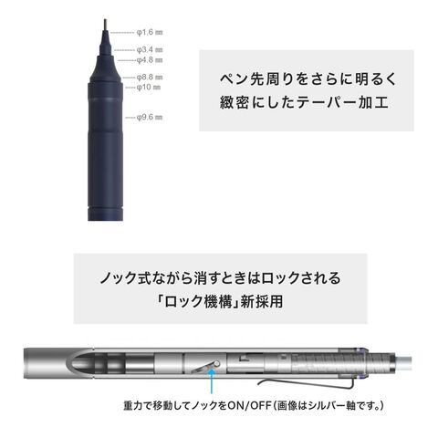 消しゴムユニットが沈み込まないようにロックされ誤ノックを防止し、