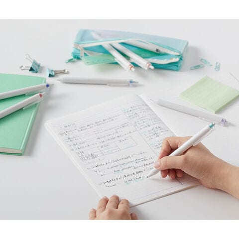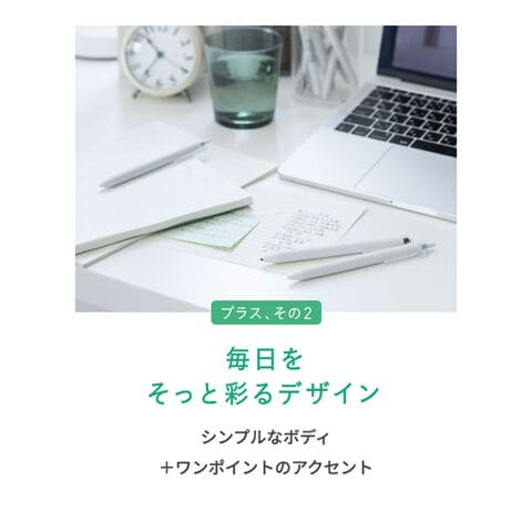 インキ色をさりげなく示すノック部分など、ペンケースや様々な生活シーンにも馴染みやすい仕様