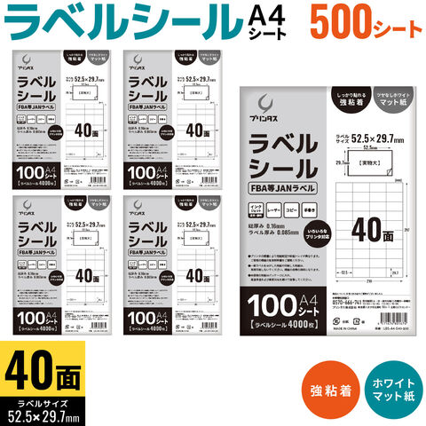 プリンタス ラベルシール A4 40面 FBA用JANラベルなど ホワイト ツヤなし マット しっかり貼れる強粘着 500シート
