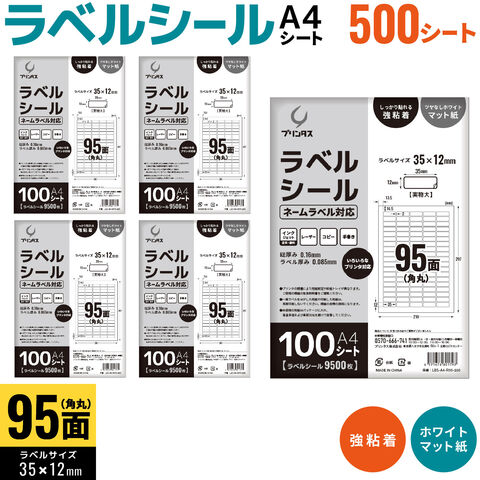 ・A4 角丸 95面 ラベルシール 500シート (100シート入りx5冊)