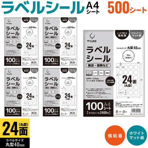 ・A4 丸型 24面 ラベルシール 500シート (100シート入りx5冊)