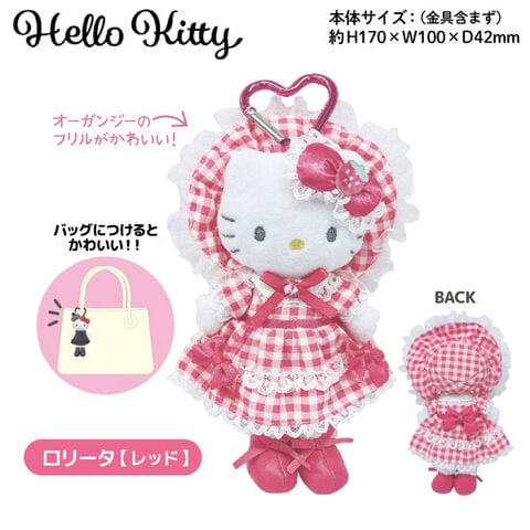 |キティ|ハローキティ|ぬいぐるみ|マスコット|おしゃれ|脚長|スタイルアップ|かわいい|ドレス|スクバ|フリル|オーガンジー|ロリータ|キラキラ|ジュエル|リボン|ハート|カラビナ|キャラクターグッズ|