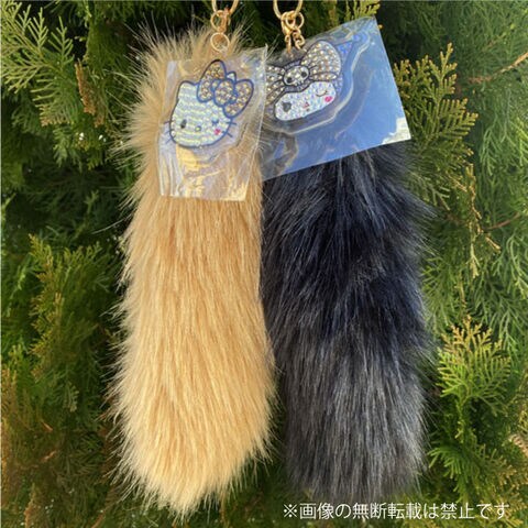 ハローキティとクロミの特大ふわふわしっぽ型ファーキーホルダー♪