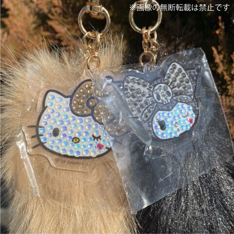 ラインストーン加工されたキティとクロミのアクリルチャームがポイント!