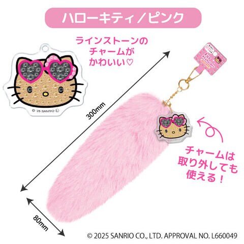 【メール便可】ラインストーン付のサンリオキャラクターのアクリルチャーム付しっぽ型ファーストラップ☆