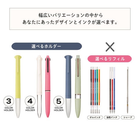 幅広いバリエーションから、ホルダーとリフィルを組み合わせて、自分にあったペンが作れます。